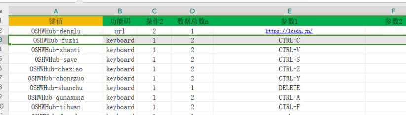 以“复制” 为例,键值为**“OSHWHub-fuzhi”**返回{“keyboard”,“1”,“2”,“CTRL+C”,“ ”,“ ”}