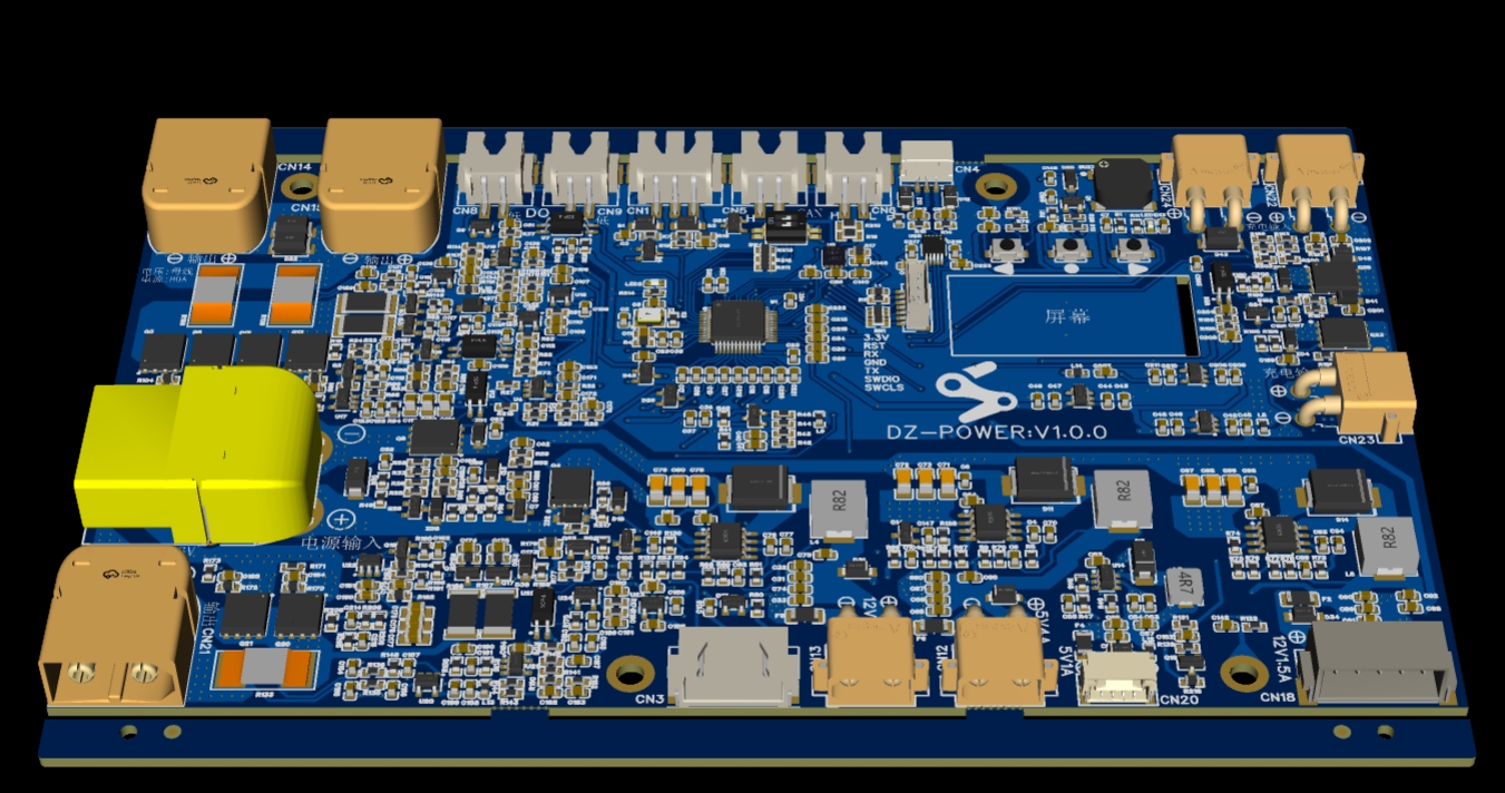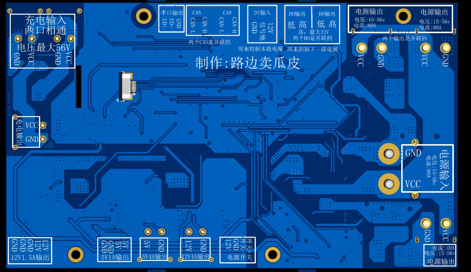 自己在制作大一点的四足或平衡车时,会用到输出十几A到几十A的动力锂电池,这时电路就需要有过流、过载、过压等的保护,虽然成品锂电池组有电源保护板,但往往保护板的过流保护和最大输出保护等要超过自己电路的保护范围,达不到保护自己设计驱动部分理想效果,加上我们也需要其他电压范围的电源来给主控,或者其他功能组件供电,这时就需要有一个集电源保护、锂电池充电保护、电源降压稳压、电源输出可控等功能的电源板,此电源板的想法就由此而来。