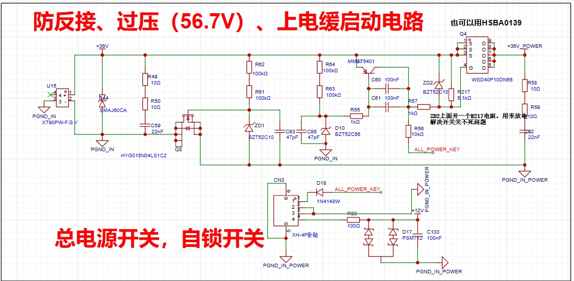 硬件防反接、硬件欠压保护,硬件过压保护、硬件上电缓启动