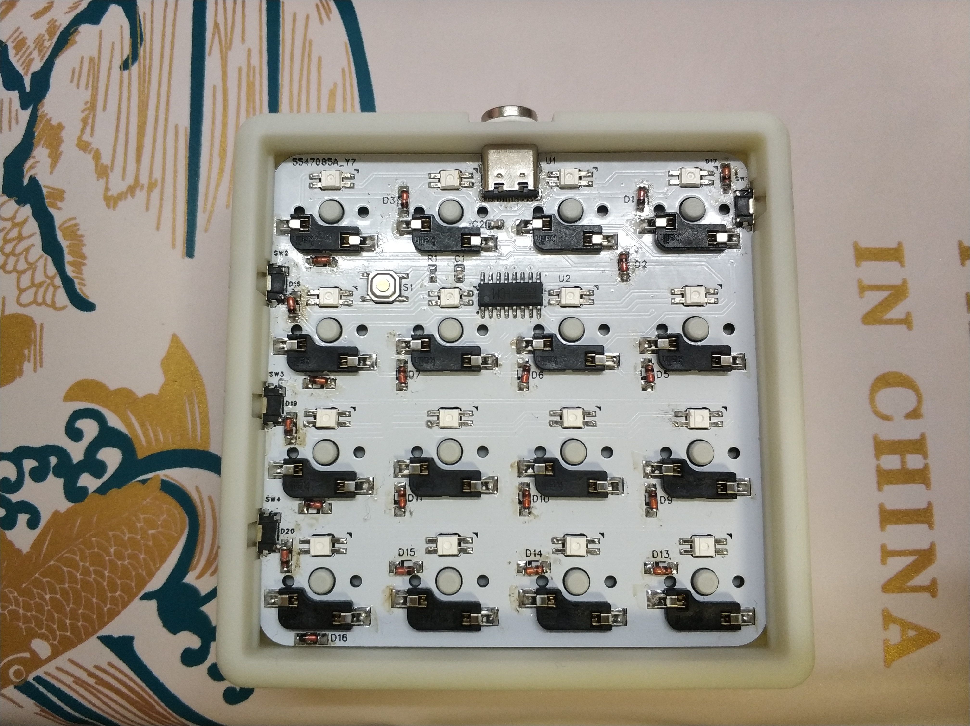 但是靠近侧键的二极管别焊,先焊侧键、反正先焊小的再焊大的准没错