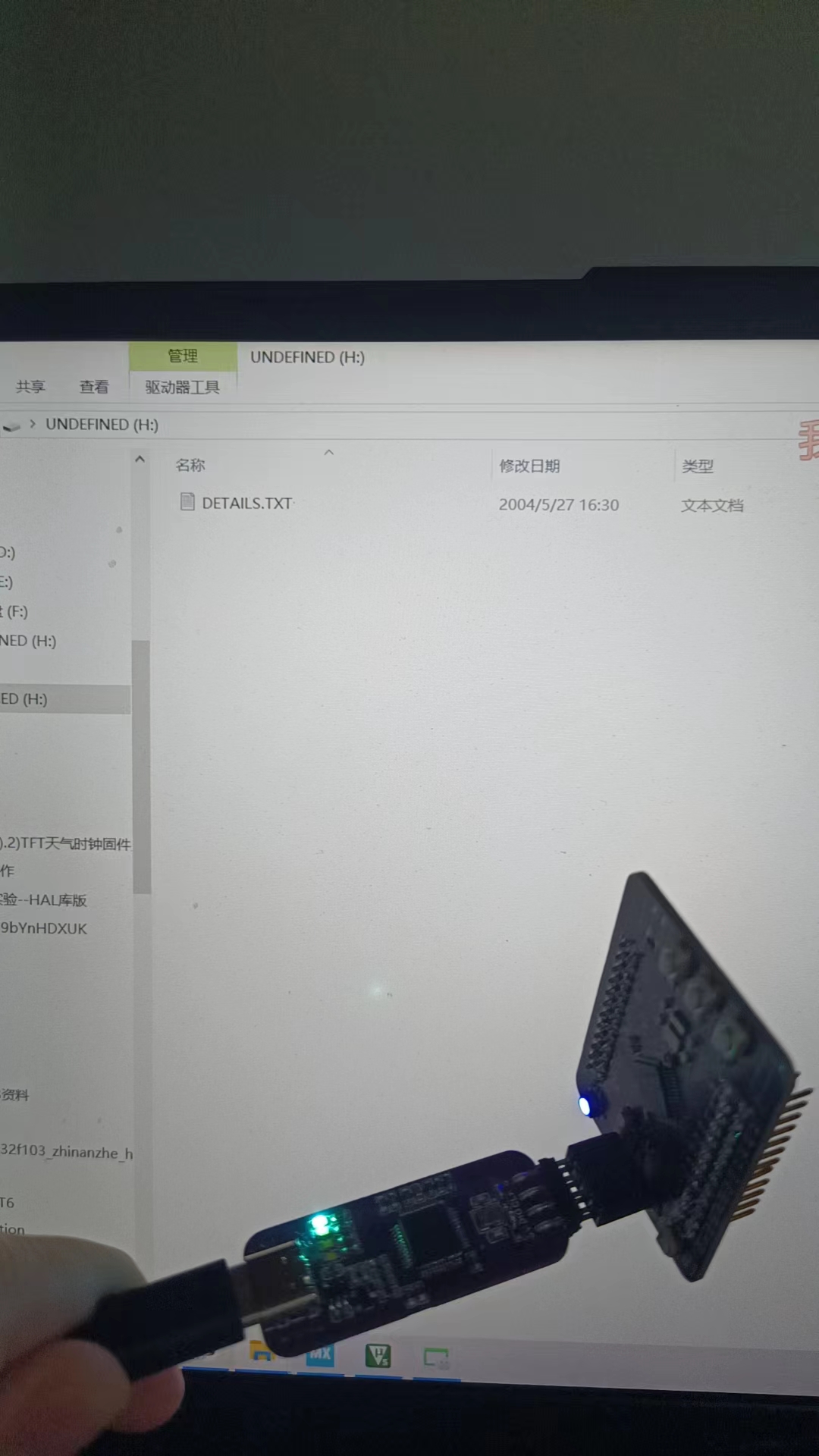 连接stm32系列芯片时弹出文件 可将hex文件拖入文件夹中进行烧录程序