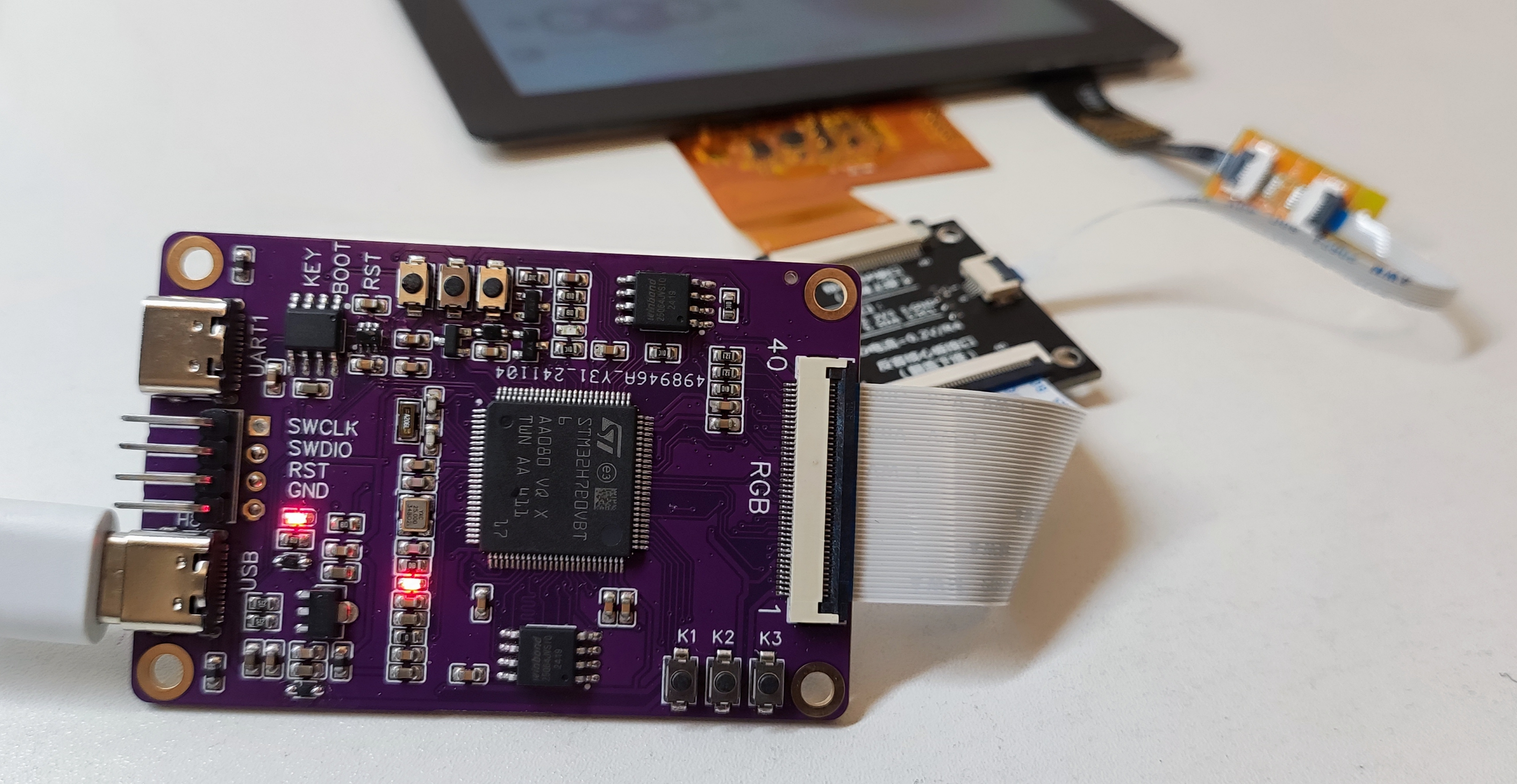 带RBG接口的LVGL+STM32H7B0VBT6开发核心板,软件完全兼容反客STM32H7B0。