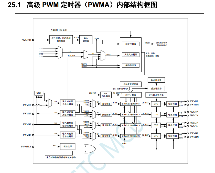 PWMA_SMCR = 0x56; // 输入1,触发模式