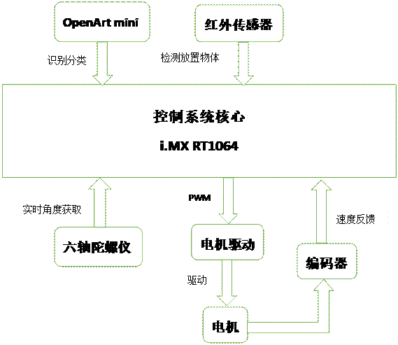 控制系统选用 i.MX RT1064 最小系统板作为核心控制,使用 OpenArt mini
