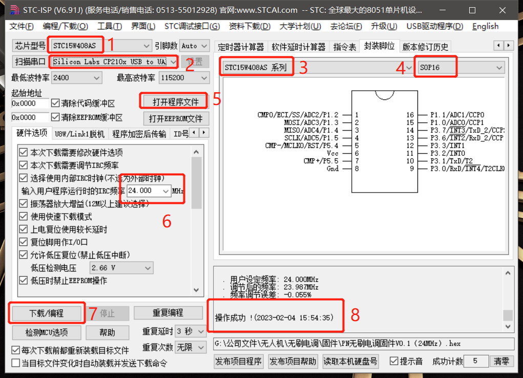 ②打开STC下载软件按教程设置相关参数,点击下载,