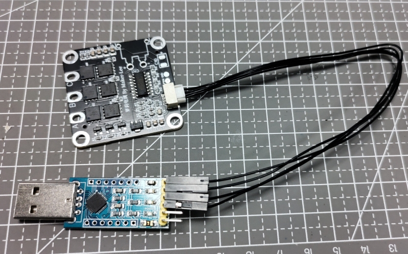 ③插上5V-5V、GND-GND、RX-TX、TX-RX,RX和TX两边需要互换,单片机重新通电,开始自动下载。
