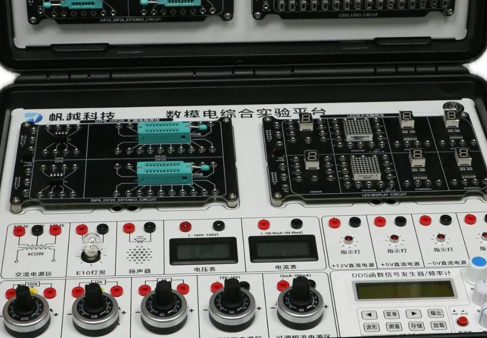 - 数模电综合创新实验平台是为电子工程、通信工程等专业学生设计的实验设备,支持数字电路和模拟电路的实验与创新项目。平台配备多种模块,其中两路DIP14和两路DIP16模块是核心组件,便于学生进行集成电路实验。