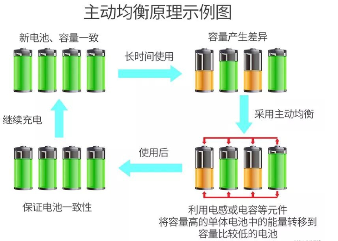 锂电池均衡觉的方式有充电时旁路放电式,电感能量转移式,电容能量转移式,变压器能量转移式。