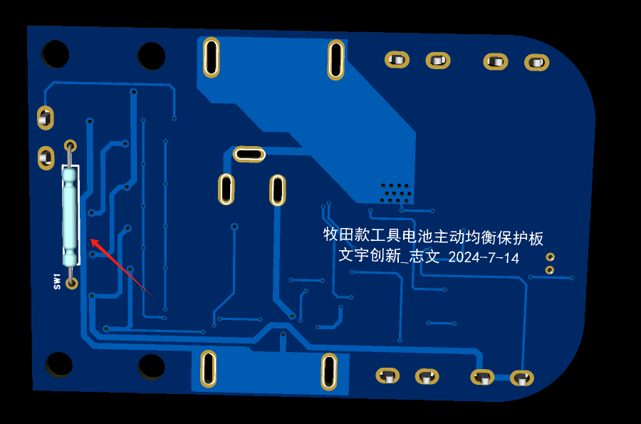 成本控制上的原因, 这里并没有对单节电池进行电压检测,整个均衡部分是一直在工作中,如果电池在存储状态,长期不用,可能会耗完电池的电量 ,所以我在这里加了个干簧管,长期存储时,外壳凹槽处的磁钢取下,均衡部分将停止工作。