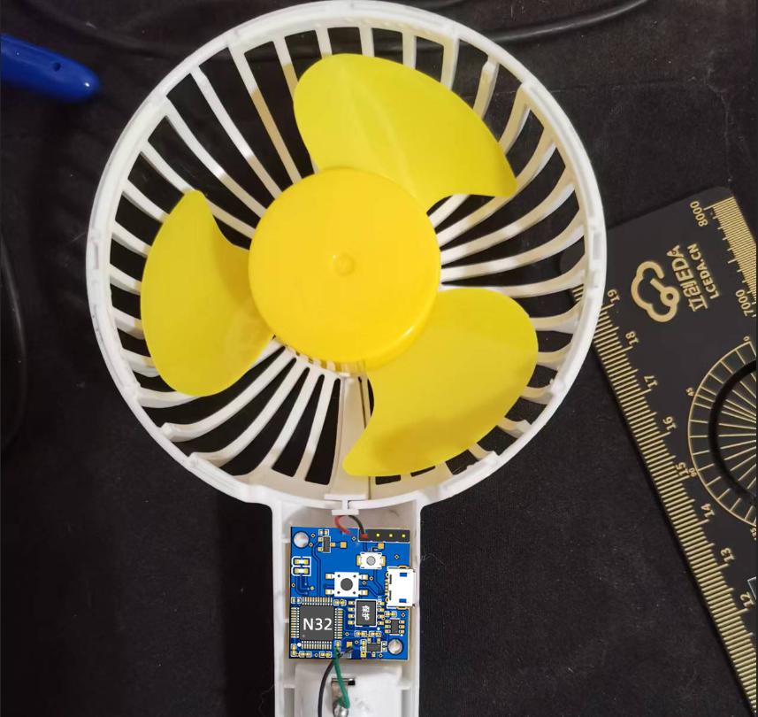 本次手持风扇使用N32G430作为主控,风扇电池部分增加了电源保护,极大的延长了设备电池的使用寿命,最主要的风扇功能上,写入了四级调速,每次按下按键切换不同转速档位,按下按钮后分别会在25%、50%、75%、100%、关闭之间进行功能循环。