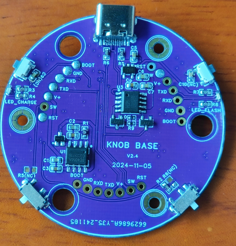 基于折腾怪大佬的0.2版本的基座制作,供电使用TP4056,下载使用CH340K。可以给键盘的旋钮供电并自动下载程序。