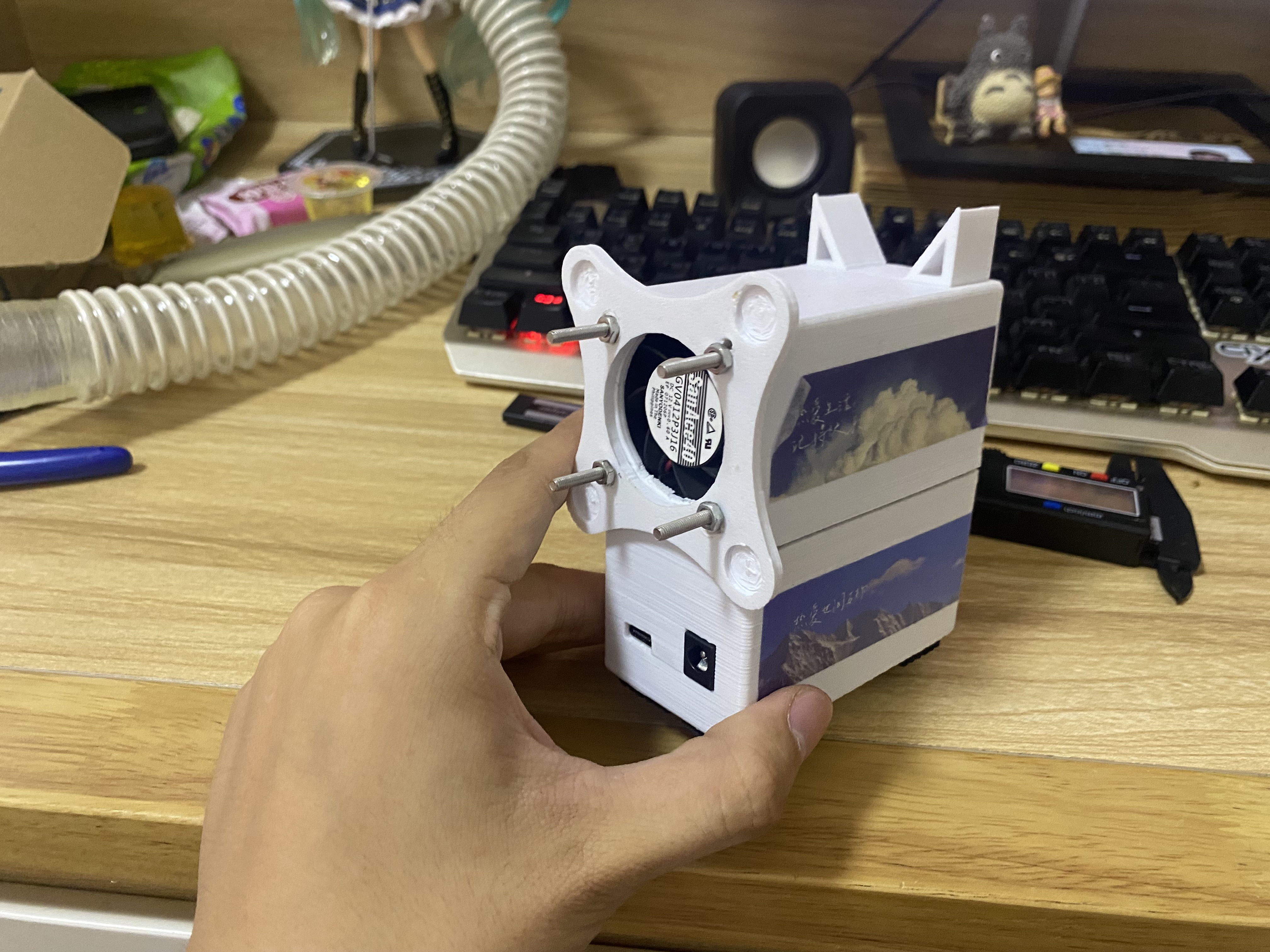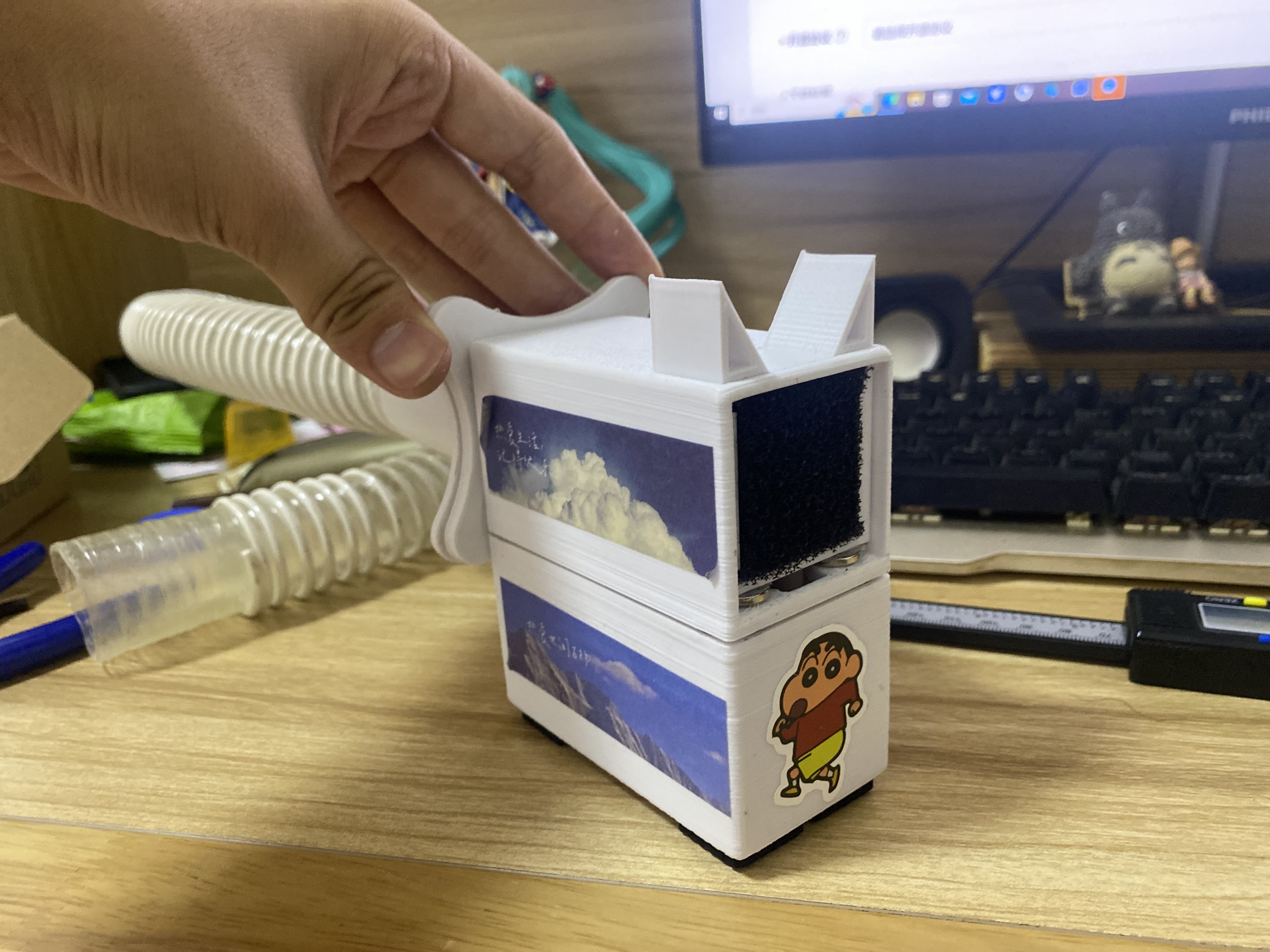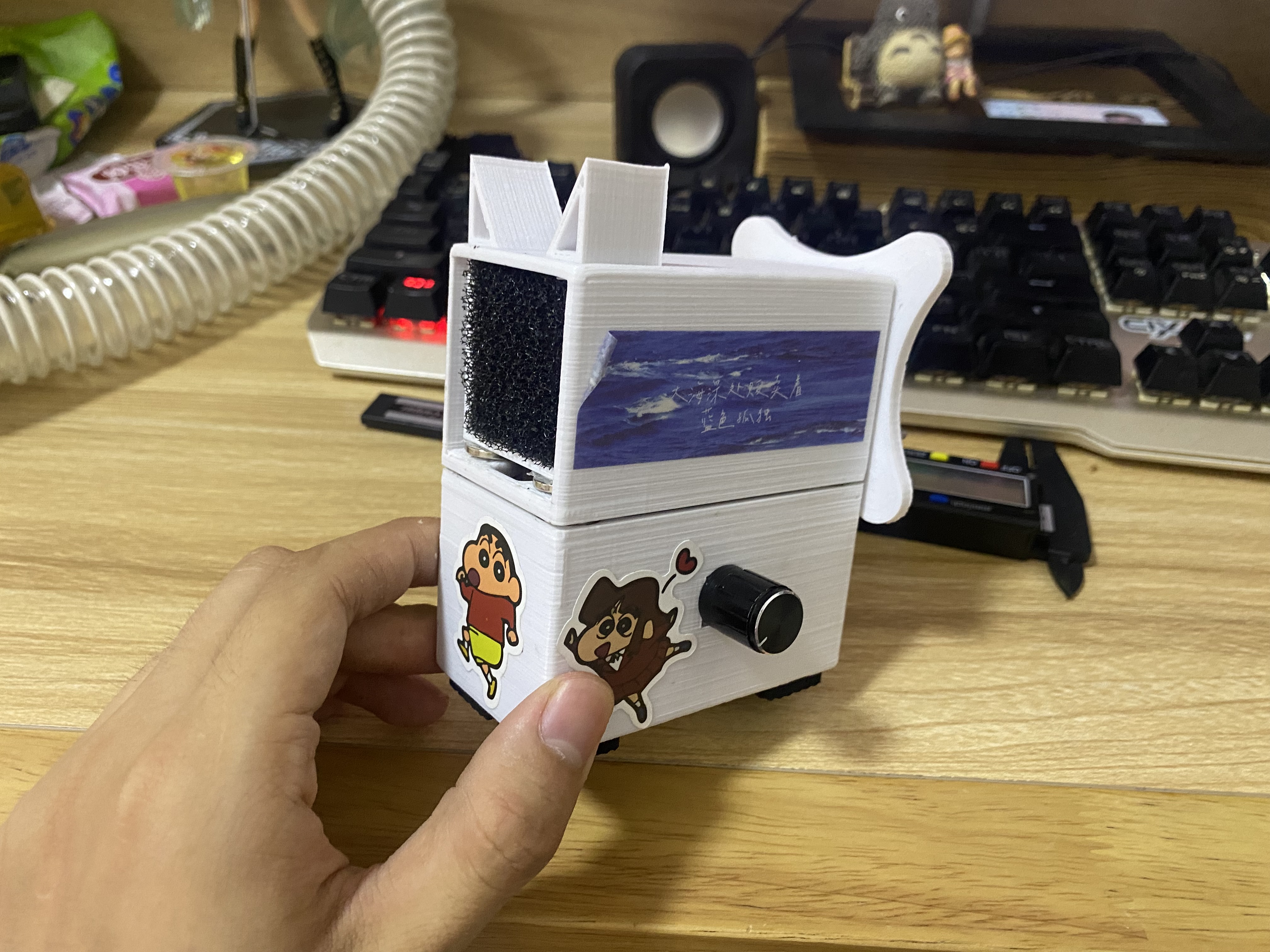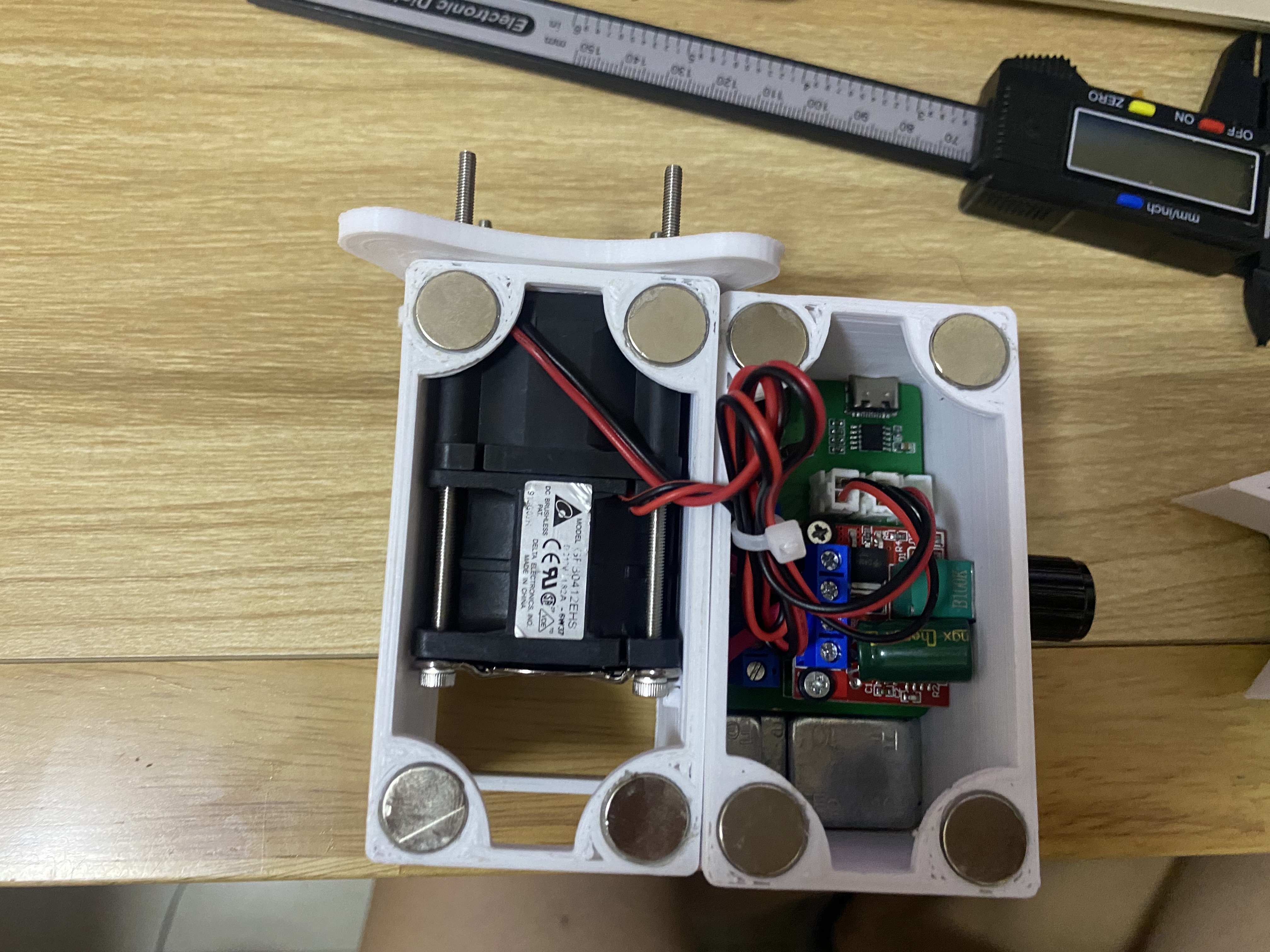 本项目受wzw666大佬开源的焊烟风扇启发 优势在于成本更低、制造容易。除外壳外,控制在20r以内(签到红包) 调速模块兼顾电源的开关,调速旋钮放在侧方兼顾了人体舒适的设计 并添加了配重块来保持稳固