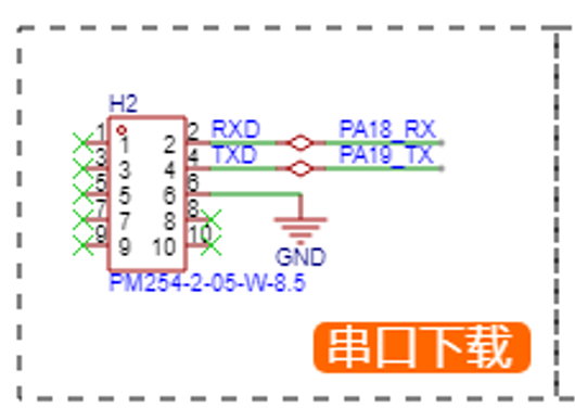 模组的下载是通过串口进行下载的,必须使用 PA18 和 PA19 引脚下载。