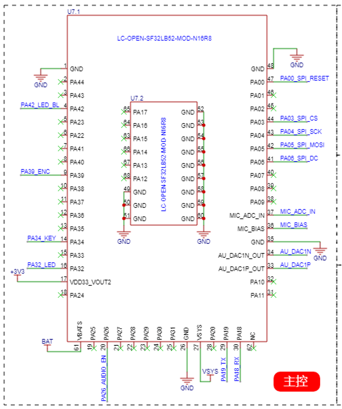 主控用的是立创·开源SF32LB52模组,型号为LC-OPEN-SF32LB52-MOD-N16R8。