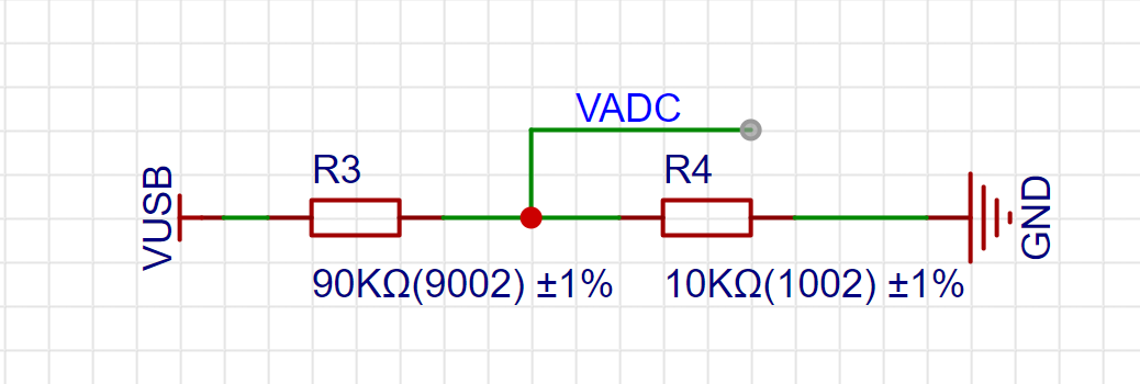 电压采样部分由两颗电阻构成的分压电路组成,其原理就是电阻串联分压的知识,其典型的电路如下: