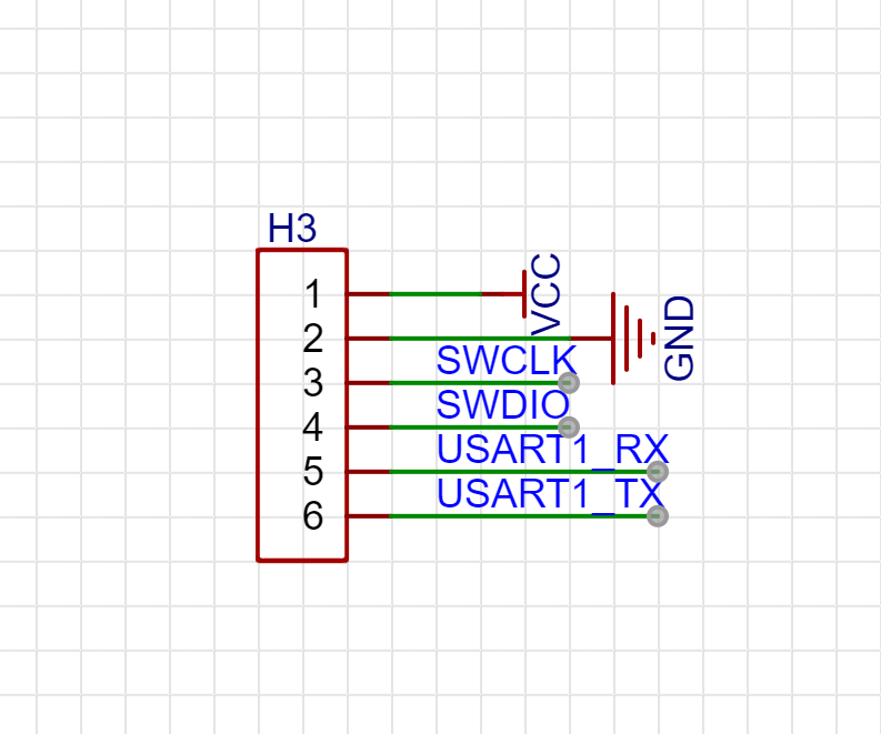 芯片支持多种烧录方式,如市面常见的ST-Link、USB-TTL、Jlink等烧录器。PCB上对应的接口使用2.54间距的排针引出作为烧录使用。