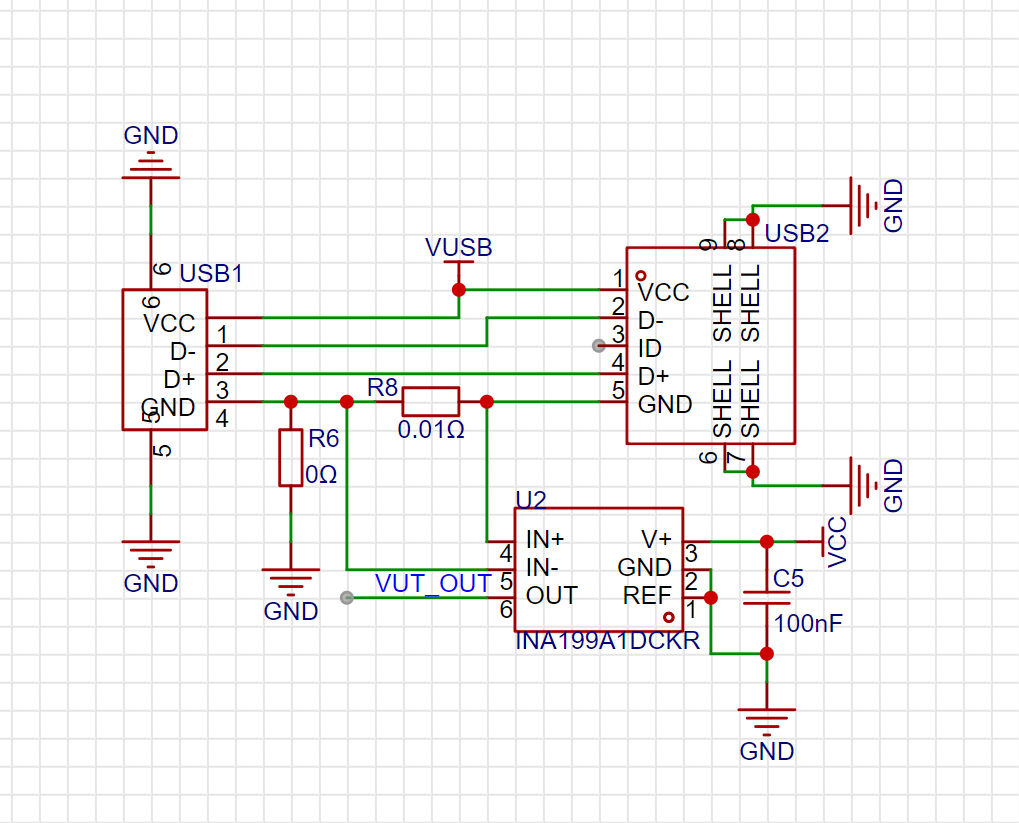 - 采用低阻值采样电阻,防止过高的内阻影响USB供电效率;