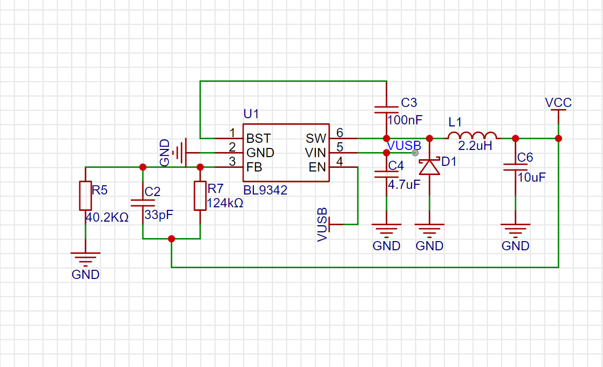 本项目使用BL(上海贝岭) BL9342 降压型DC-DC电源芯片转换输出3.3V供MCU、OLED屏幕使用,该芯片为宽电压输入(4.2V~40V),效率>90%, 电流可达0.6A