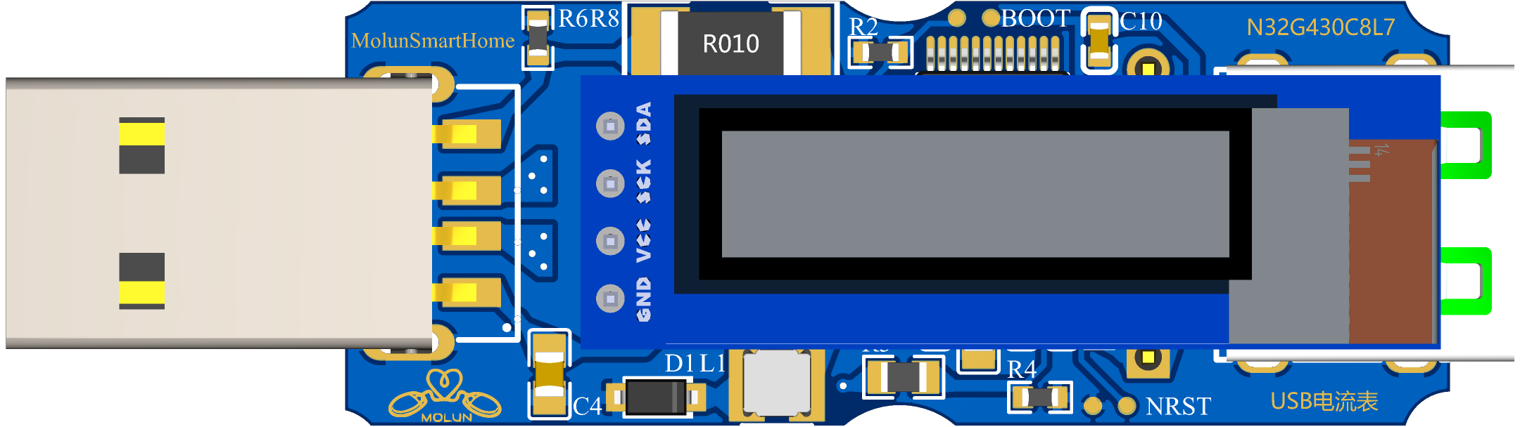 基于N32G430C8L7+INA199制作的USB电流表,精度1%,可以查看USB工作时候的电流,复刻修改至【训练营官方案例】,一个是支持快充的电流表。