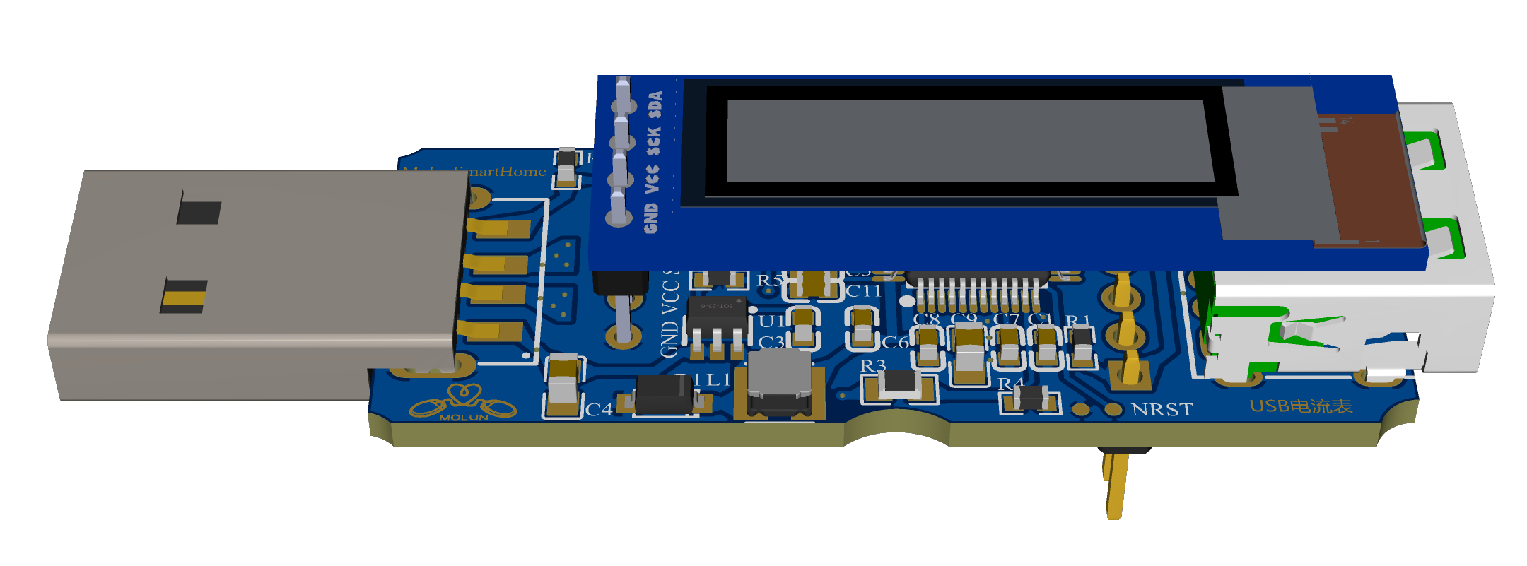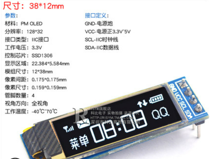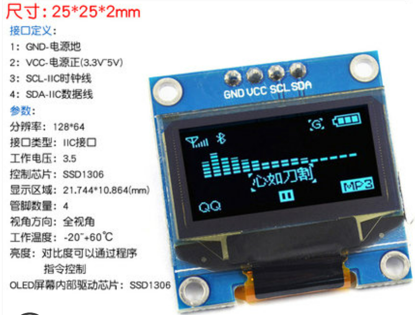 显示部分的是使用的是0.91寸/0.96寸 4P的白色OELD屏幕模块,采用IIC通信,显示效果清晰。