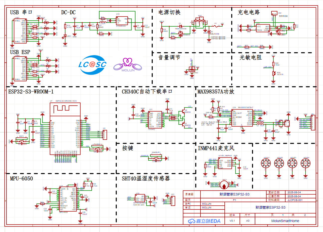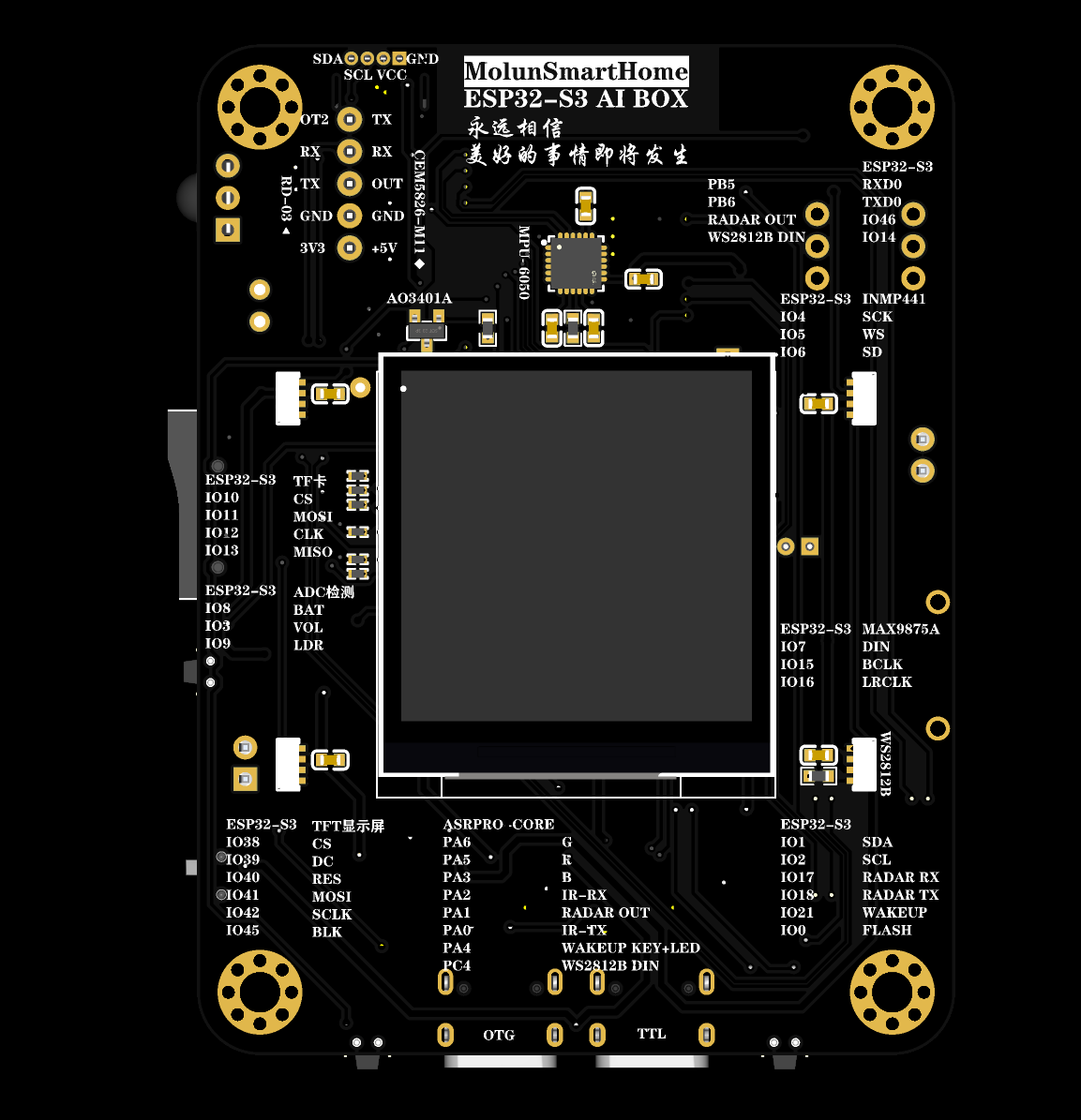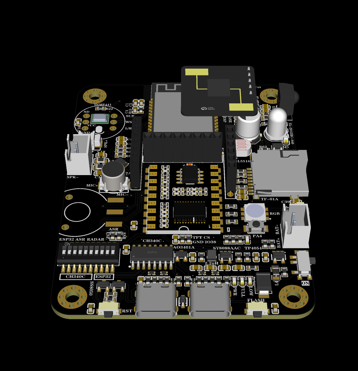 - **音频模块**:麦克风采用INMP441,功放模块使用MAX98357A,且板载天问ASR-PRO核心板。