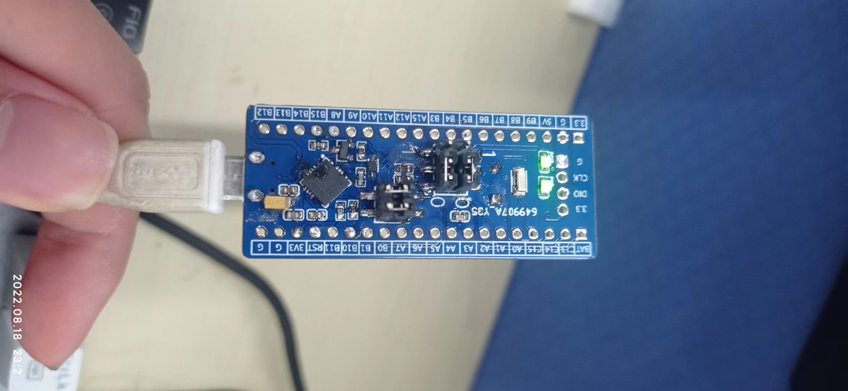 做了个点亮板载LED测试,程序能一键下载,但是需要插拔USB才能运行。
