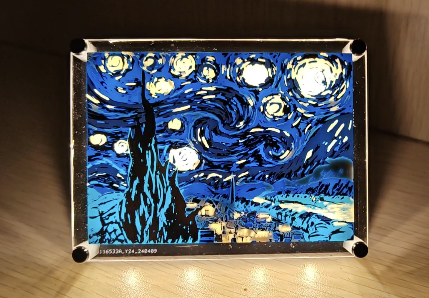 如果要最大程度还原星空这幅画的色彩,LED灯珠建议使用黄光。实测充一次电可以连续亮4-5个小时,且发热量小。