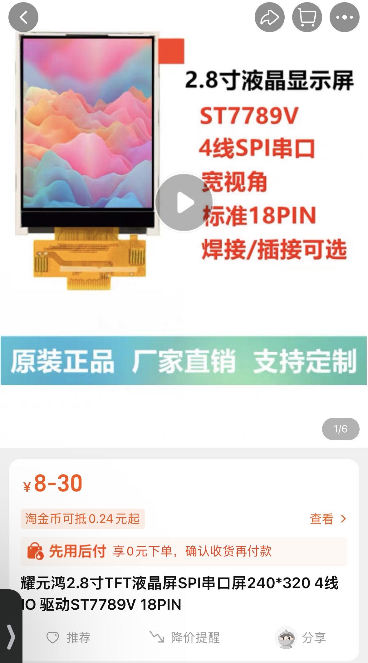 - 屏幕使用2.4寸tft屏幕,18pin,插接款
