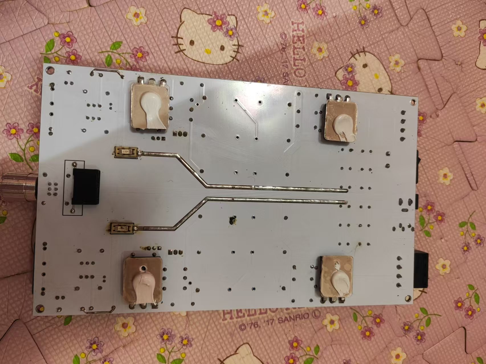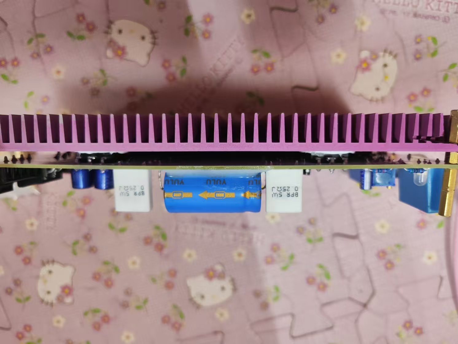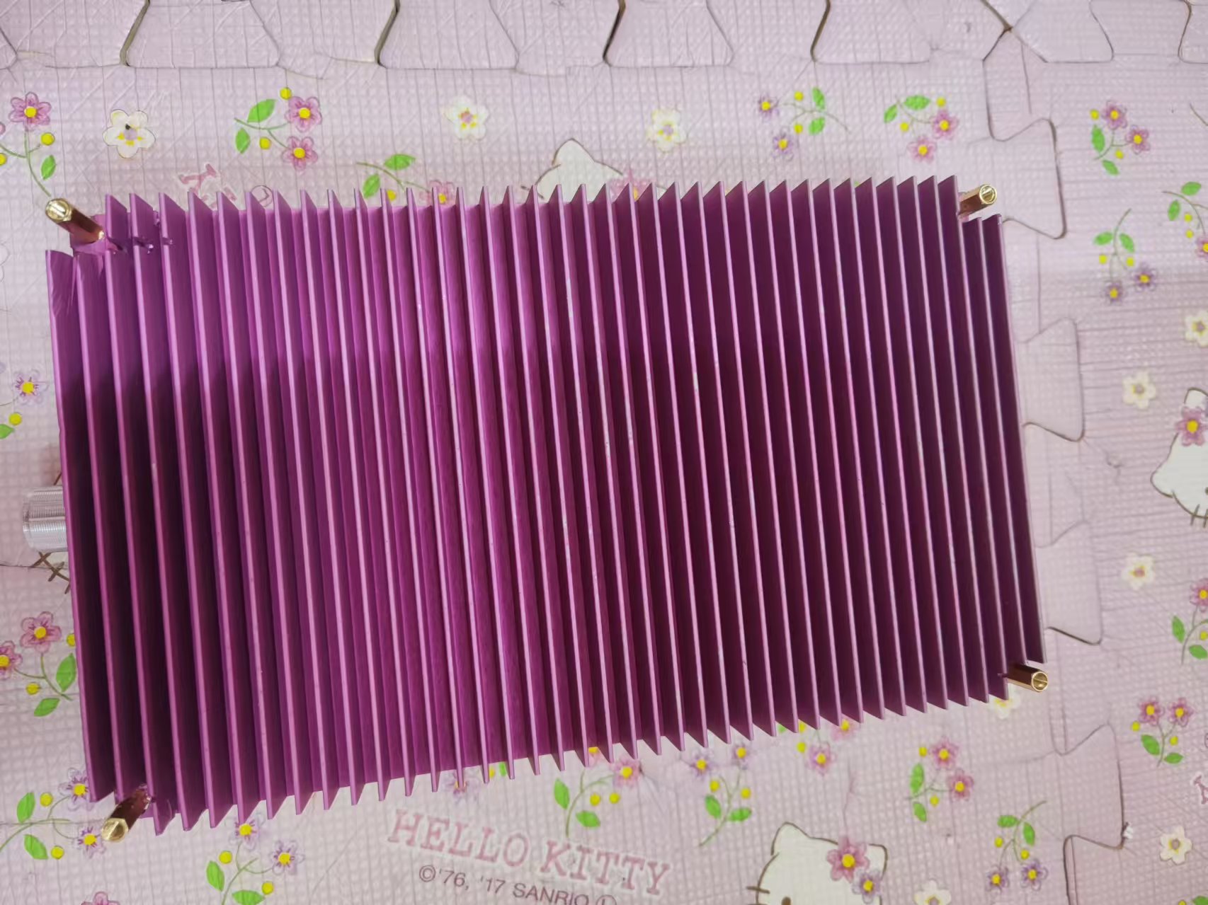背面用的一整块散热器,咱自己做的阳极氧化效果不是很完美。。。保证散热最大功率应该能达到30W叭~不过还是建议推25W以下,小心炸管呦~