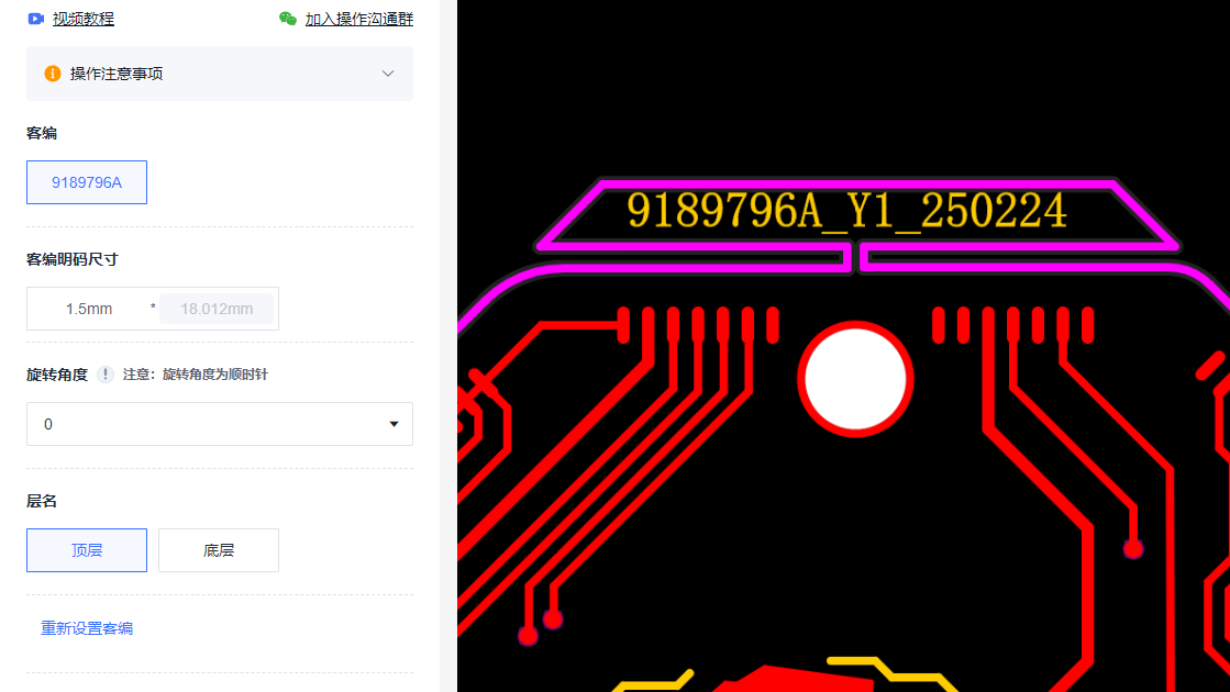 增加了客编的位置,下单的时候大小把2mm调成1.5mm就可以,DRC的话会提示连接错误,考虑到只是装饰作用,也就忽略了。