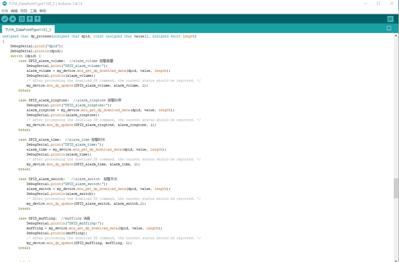 5.MCU程序的编写,这里采用ARDUINO IDE进行开发,使用涂鸦Tuya_WiFi_MCU_SDK库相对简单容易上手。