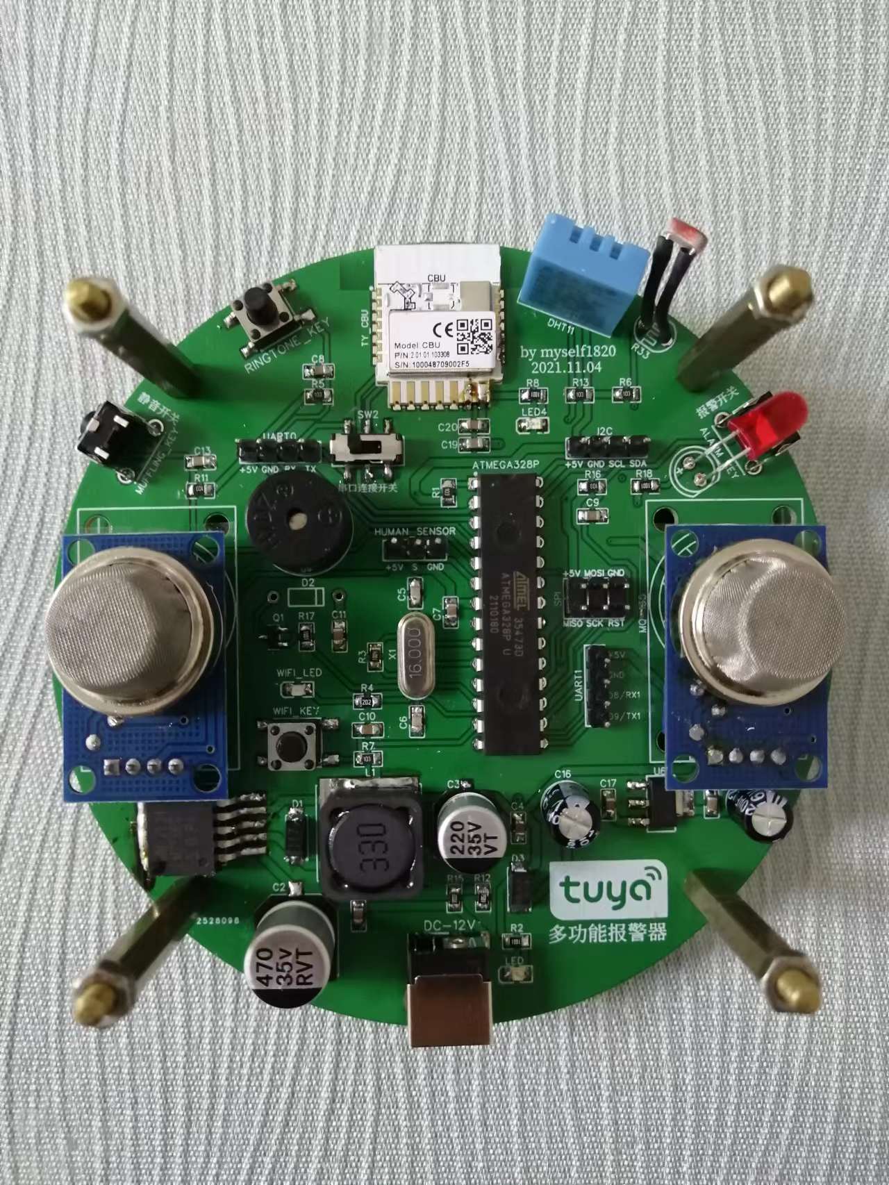 采用涂鸦CBU Wi-Fi & Bluetooth 模组和ATMEGA328P-PU制作的多功能报警器,