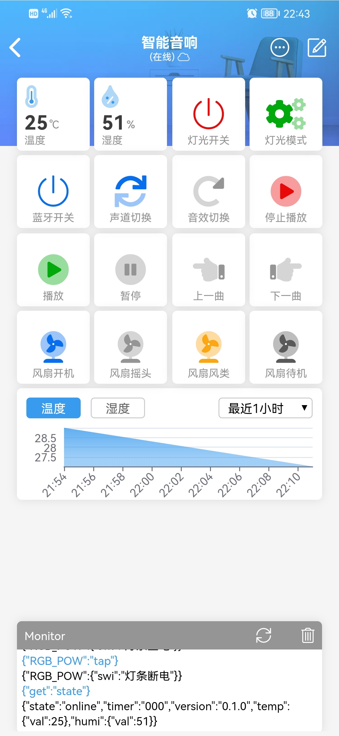 实际使用中会有个问题,如果音乐声太大,语音很难被识别,这时可以使用手机来控制。
