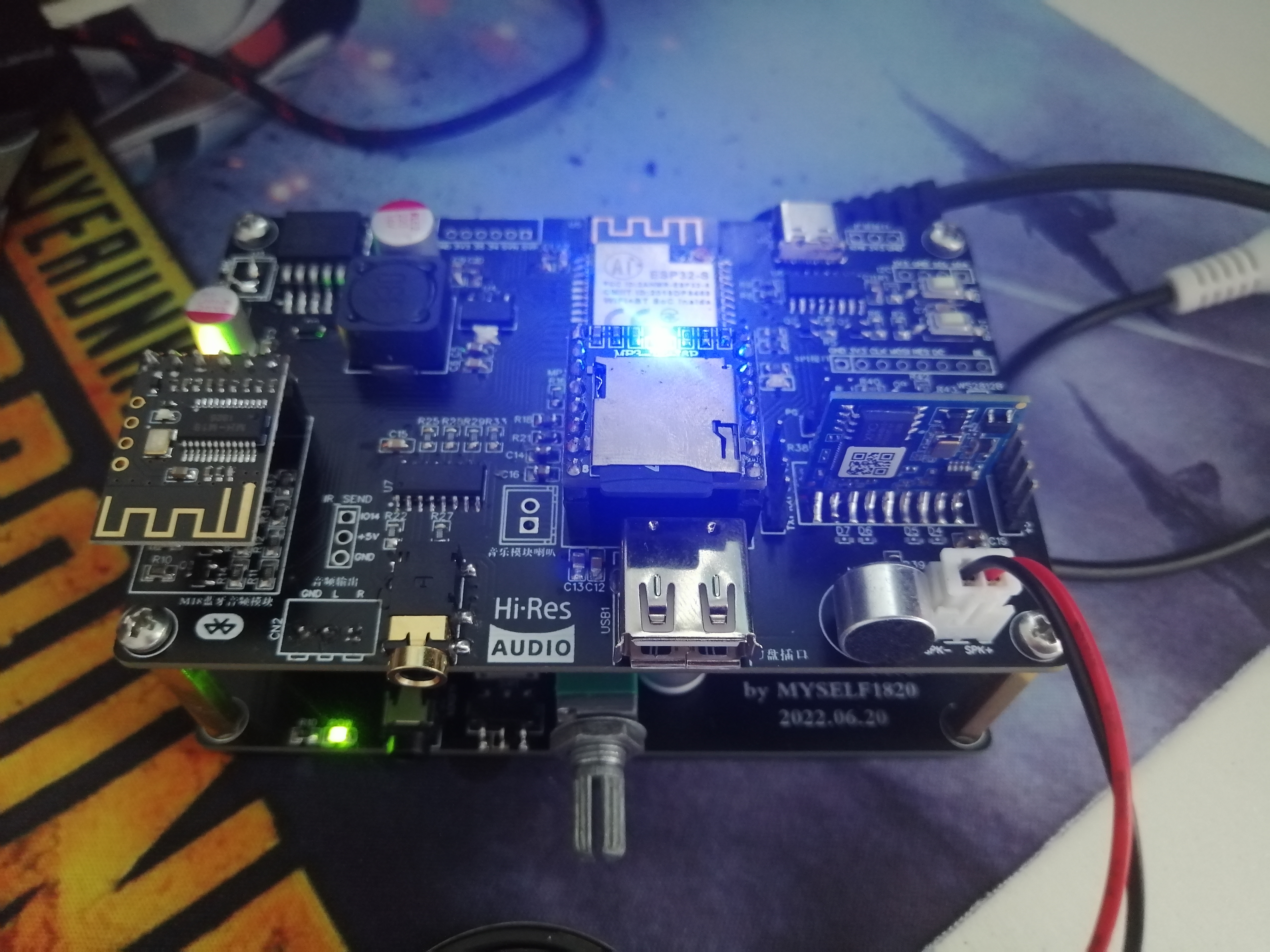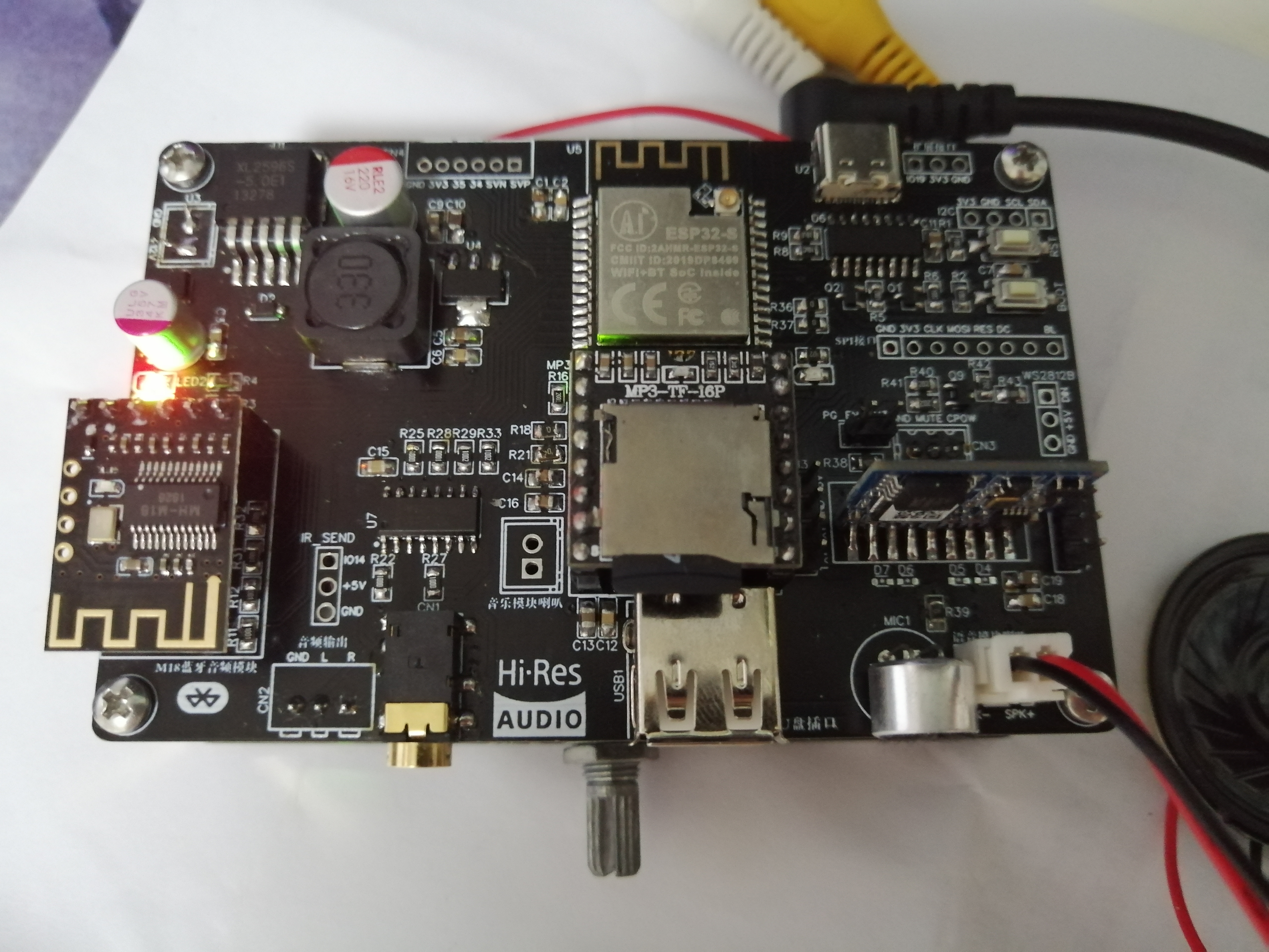 第一版引脚分配的不合理,MP3音频模块的串口和CH340共用了,导致不能正常通信,后来改用IO21和IO22了。将原来的IO15和IO19/MISO引出来控制音乐节奏灯,所以图上很多线,后期有时间再重新调整一下。