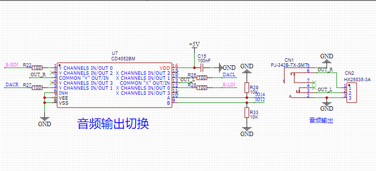 CD4052BM实际可以输入4路,这里只是用了两路。