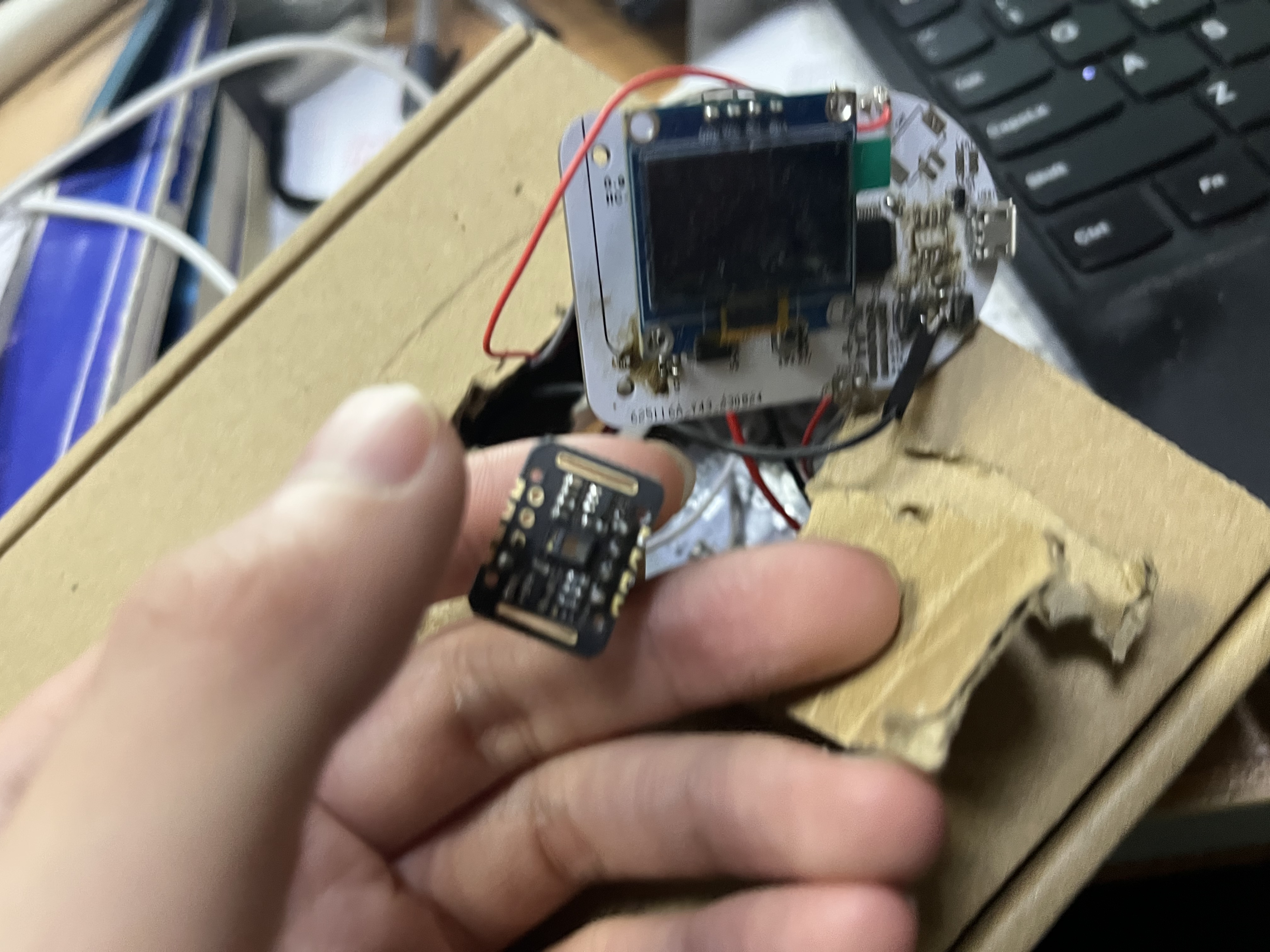 利用屏幕显示相关的测量参数,同时设计了数字温度传感器感知环境温度或者人体温度,屏幕采用0.96寸的OLED成品模块。