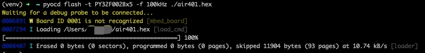 pyocd flash -t PY32F002Bx5 -f 100kHz ./Air401.hex