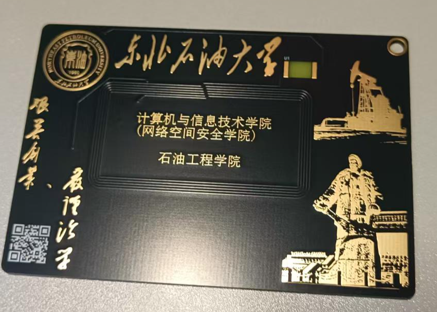 东北石油大学校园卡,在第一版的基础上更改了NFC芯片,因为第一版采用的芯片焊接不好整,我尝试焊了两个,结果都以失败告终。这一版就直接用一卡通的芯片进行设计。同时采用沉金进行打板。
