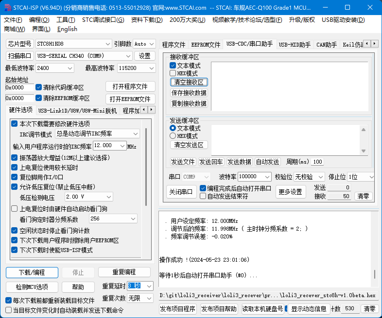 下载时选择IRC频率12MHz。