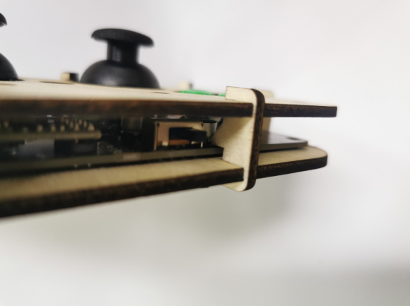 将遥控器与木板装好,按此图中卡扣位置图将外壳固定好即可。