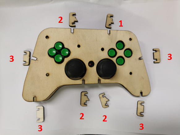 3、在“遥控器模型”中您可以看到遥控器整体的装配模型。另外,进一步在“木板切割文件”中躺着3个.dxf的文件。这是手柄的木板外壳切割文件。请使用3mm厚的木板进行切割。(我们这里不着急组装,需要等待程序下载好之后再组装;)
