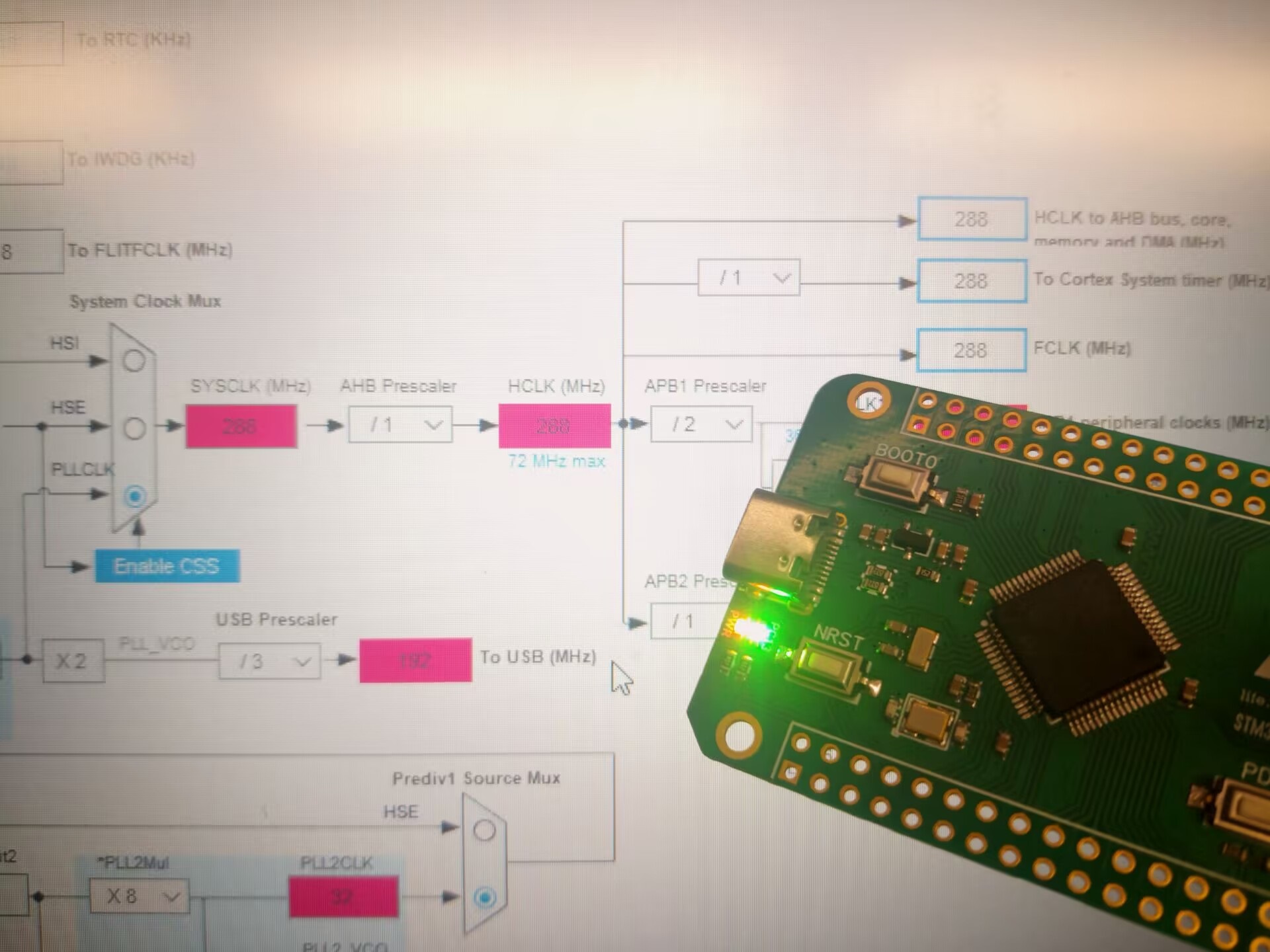 (最后超频到了320MHz会存在不稳定的情况,起步能运行,但是温度上来后内部锁相环会失锁然后崩了,所以最高就只超频到了320MHz,更高频率会直接无法起振锁定)