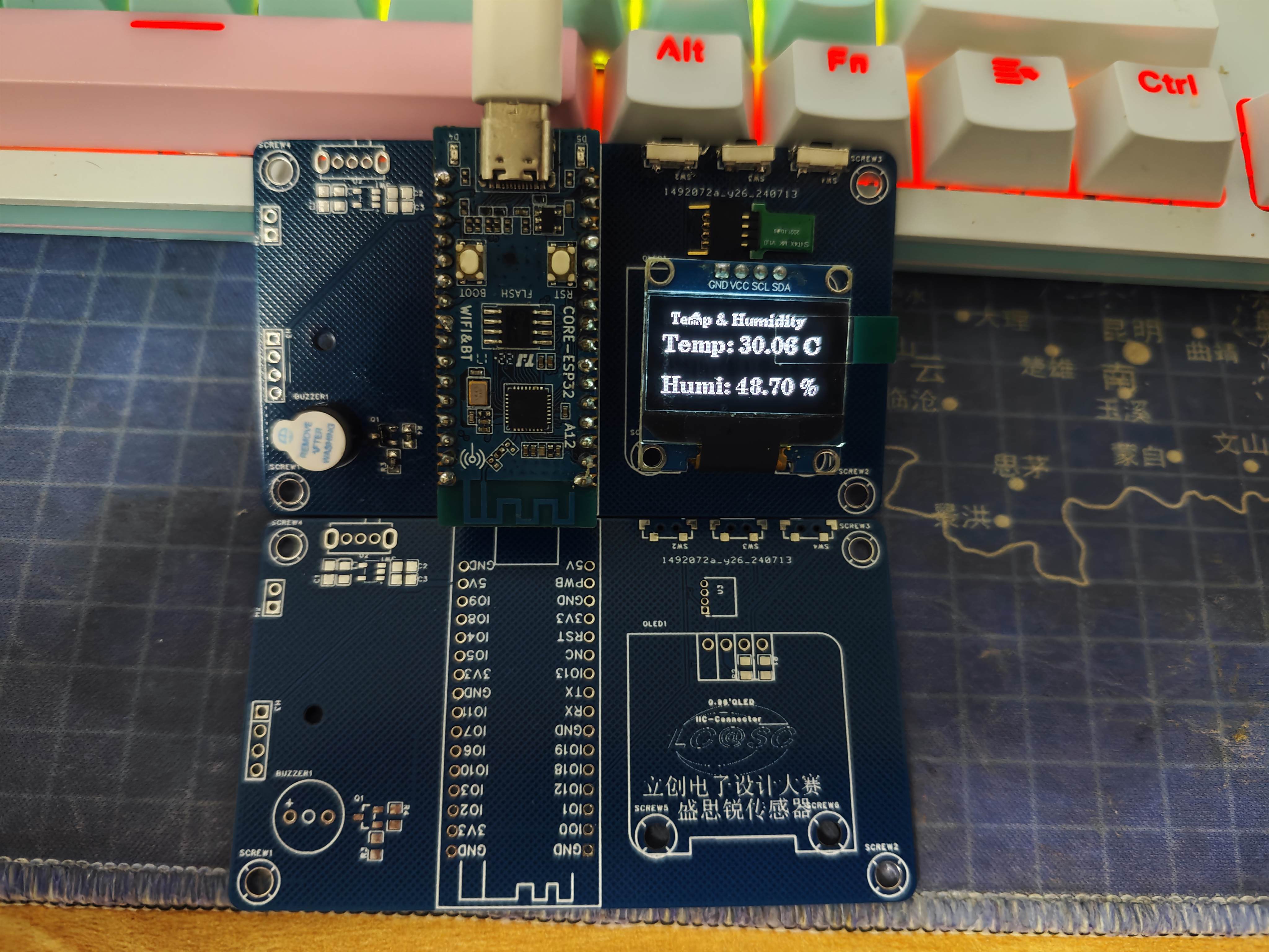 基于盛思睿温湿度传感器的桌面温湿度监控仪,主控采用ESP32C3 WIFI_BLE芯片,使用0.96寸OLED移植u8g2做界面,增加番茄钟功能。