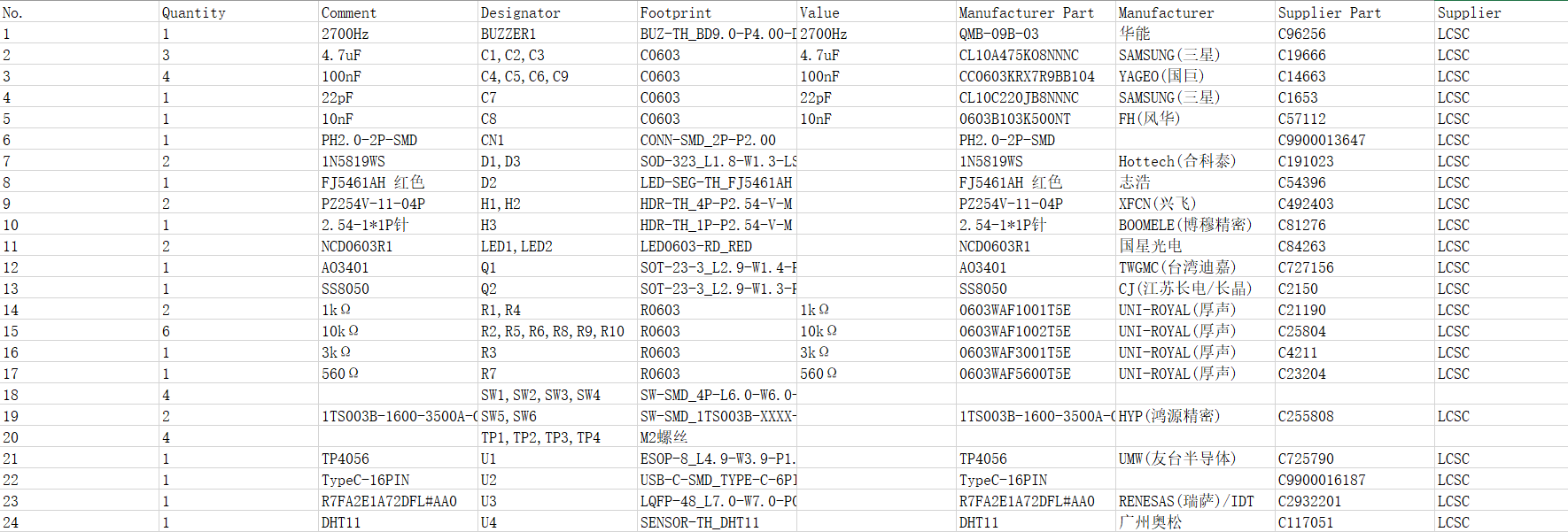 本项目采用立创EDA专业版设计的基于 R7FA2E1A72DFL芯片的桌面时钟,通过0.56寸共阴数码管显示,集成DHT11温湿度传感器,无源蜂鸣器,锂电池充电电路。