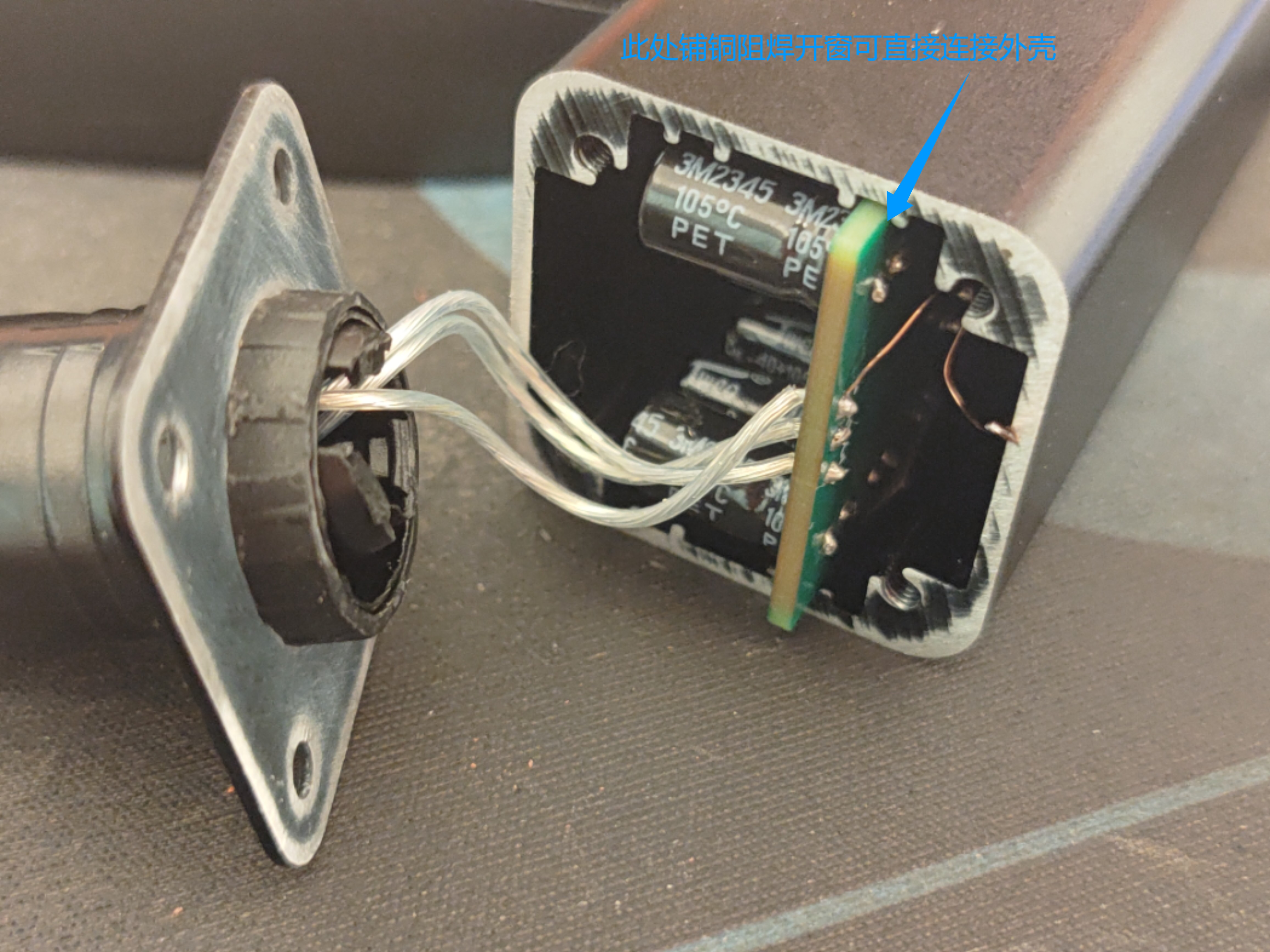 个人经验,涉及到麦克风的电路,外壳做好屏蔽可以大幅降低底噪,所以务必采用金属外壳且外壳部件间电气接触良好,并连接到到电路板上的GND。一开始我想用18650充电宝套件直径26mm的圆筒铝管外壳,但是电路中有数个体积较大的电容和电源模块,内部空间实在过于极限,遂采用32mm铝方管外壳。铝外壳端盖处打磨掉阳极氧化层,通过漆包线连接PCB,端盖使用台钻和锉刀开孔,也可以尝试画PCB做端盖,记得覆铜和阻焊开窗。PCB GND也可以尝试直接在与铝外壳卡槽接触的地方开窗加锡直接与外壳连接。