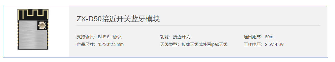1,模块采用深圳市智兴微科技有限公司ZX-D50的蓝牙模块