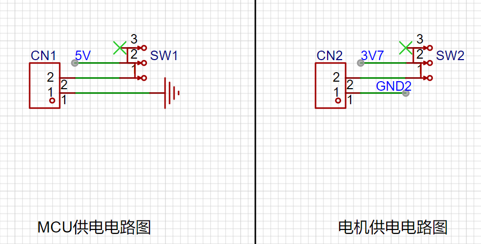 采用两路电源方案,一路为ESP32S3开发板供电,一路为电机供电,避免互相干扰。特别是摄像头,需要更稳定的电压,当电压低时,图像会有水波纹。