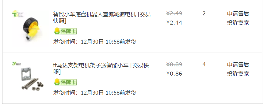 某宝上买的,电机、车轮、固定支架各4个,不超过15元。