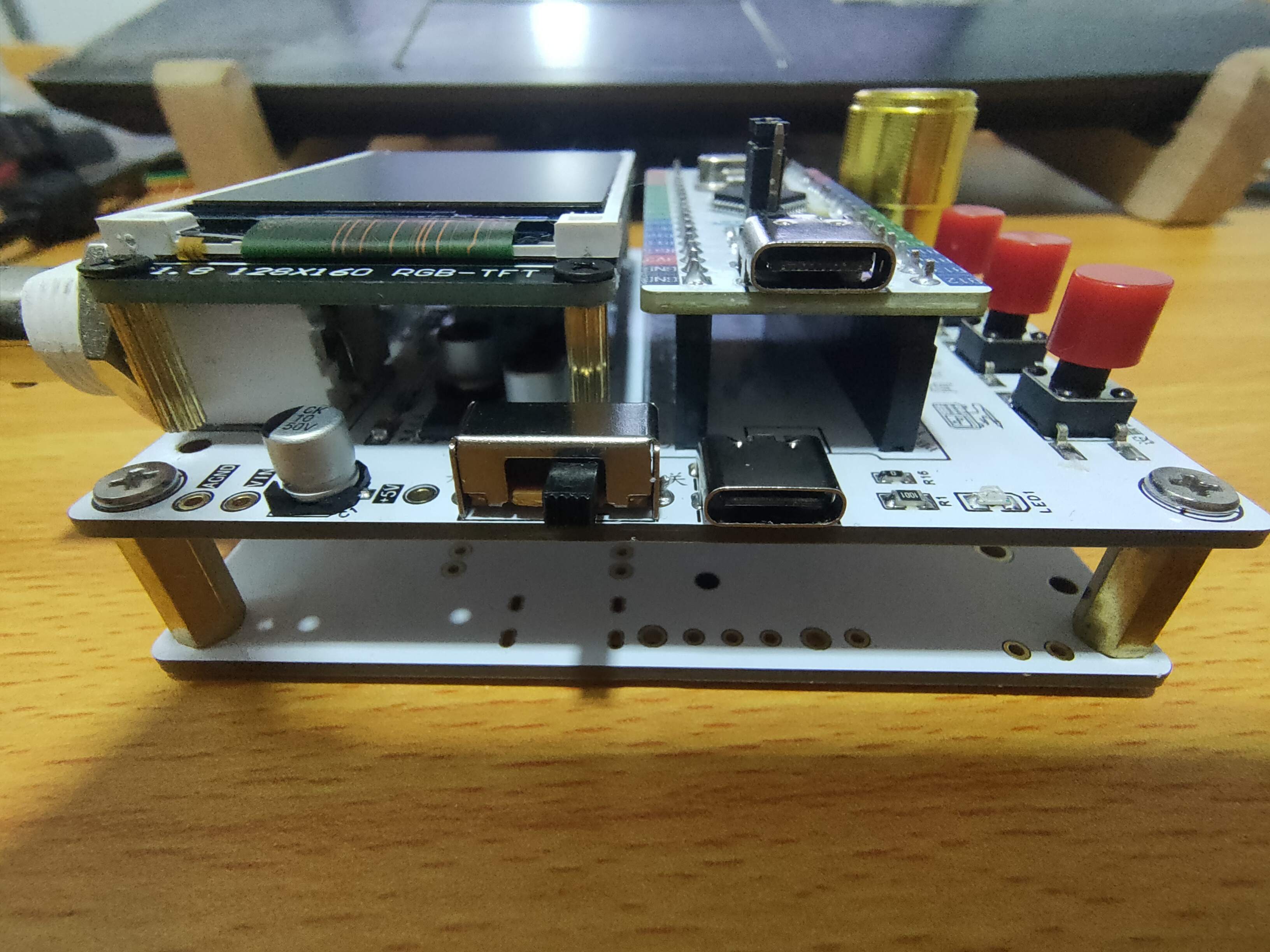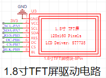 1.8 寸TFT 是一款彩色显示屏,具有 128 x 160 个彩色像素,使用四线SPI通信方式与单片机进行连接。这是将采集到的信号波形、幅值、频率等信息显示出来。