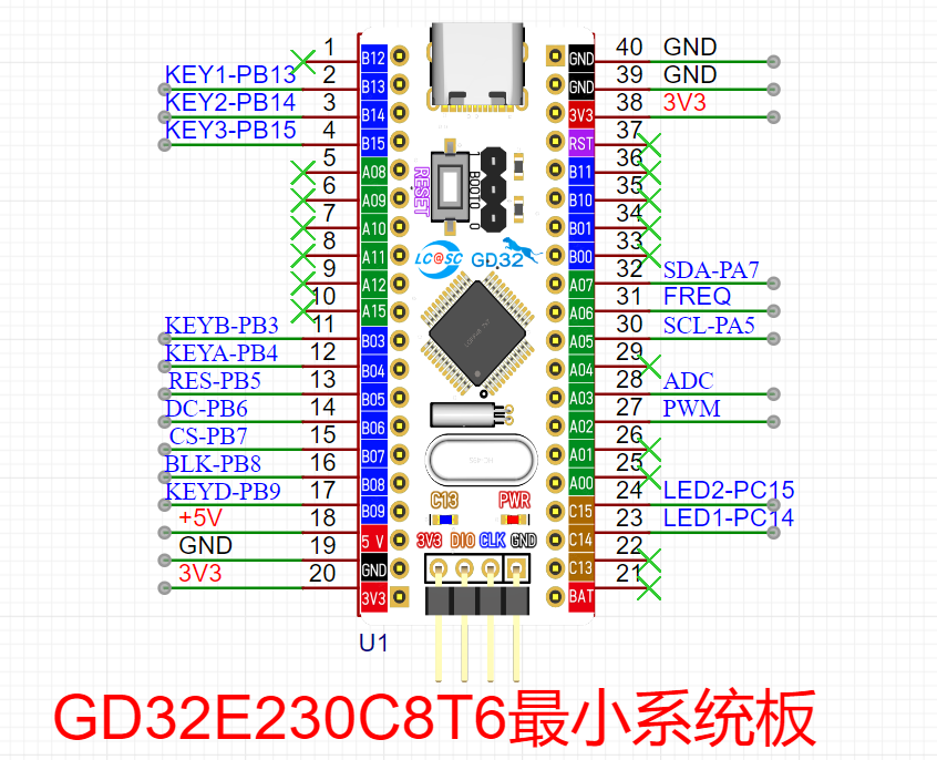 为了方便(其实是想偷懒)主控直接使用了立创开发板的GD32E230C8T6的最小系统板。